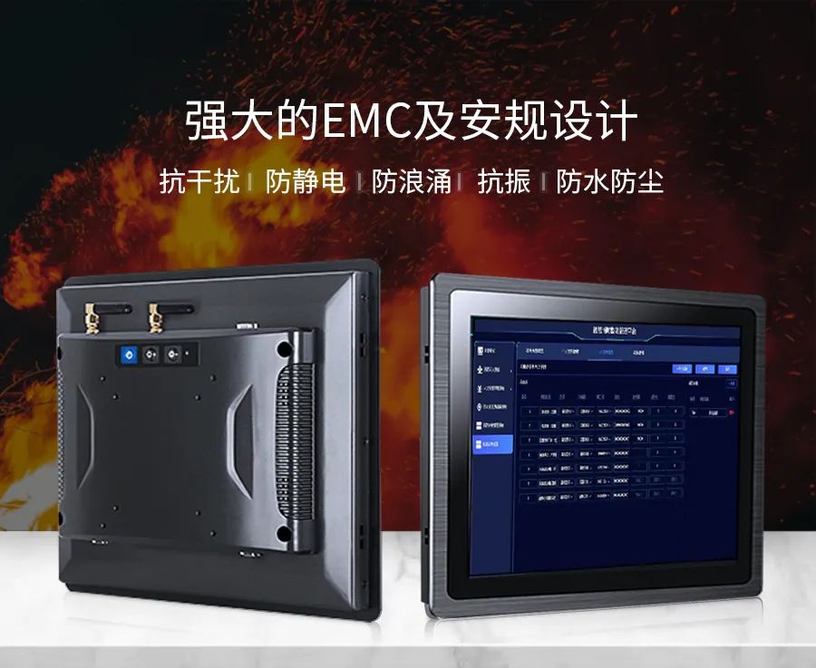 AGGAME工业一体机采用EMI/EMC级抗干扰、防静电、防浪涌、抗振等安规设计,支持宽温(-10℃~60℃)宽压(DC12V-36V)运行,封闭式框贴工艺防水防尘,可充分匹配消防控制室的环境要求和火灾报警设备行业规范,支持7*24小时不间断稳定监测。